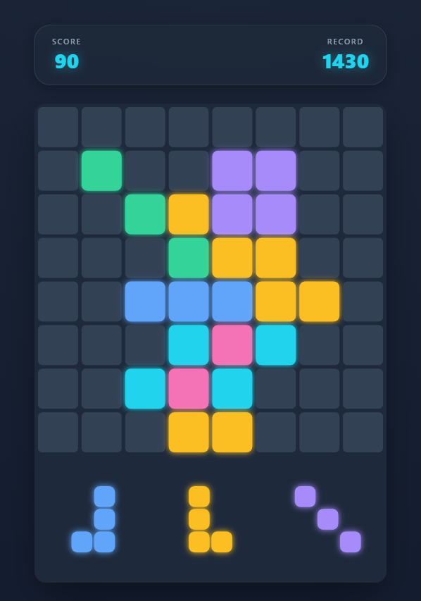 Dive into a sleek, neon-soaked world where strategy meets satisfaction. Your goal is simple: fit blocks onto the 8x8 grid to clear lines and beat your high score. But this isn't the puzzle you're used to—we've introduced new mechanics to challenge your logic.